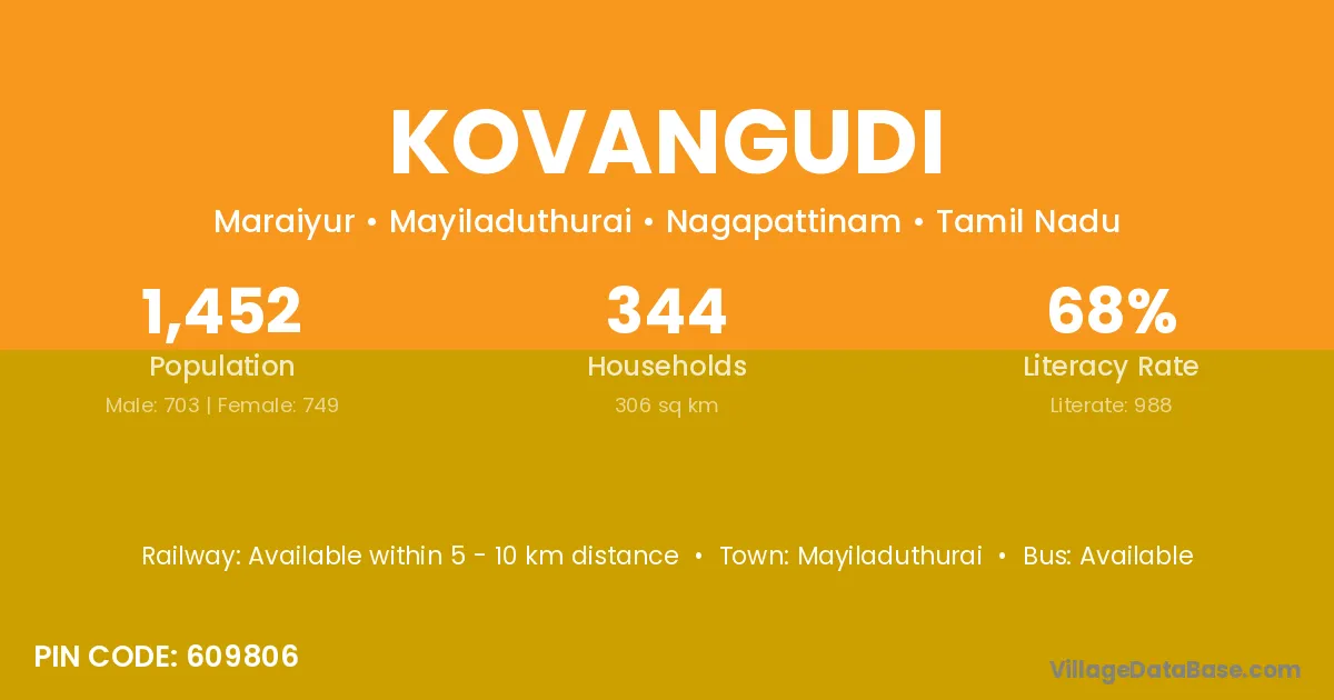 Mayiladuthurai is the nearest town to Kovangudi village for major economic activities