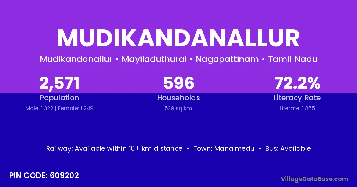 According to Census 2011 information, the village code of Mudikandanallur village is 609202.