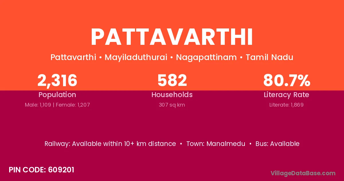 Manalmedu is the nearest town to Pattavarthi village for major economic activities
