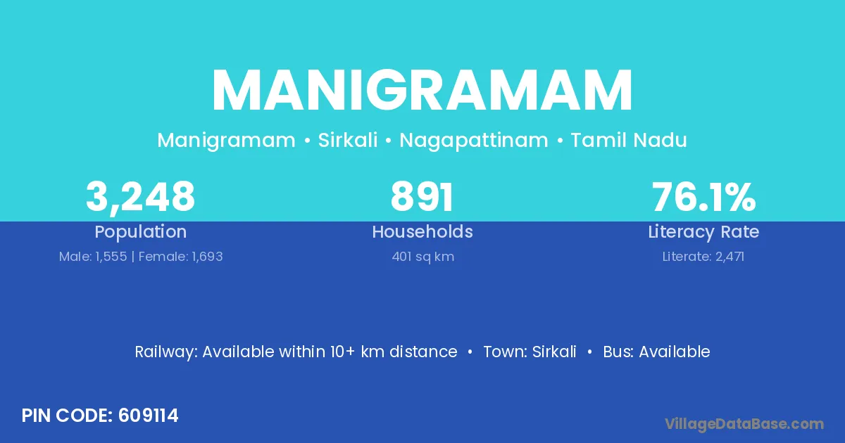 Sirkali is the nearest town to Manigramam village for major economic activities