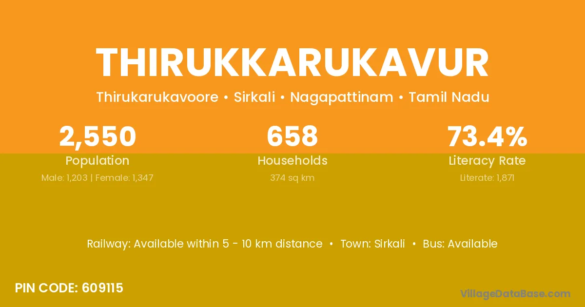 Thirukkarukavur village has a total population of 2,550 people, of which 1,203 are males and 1,347 are females.