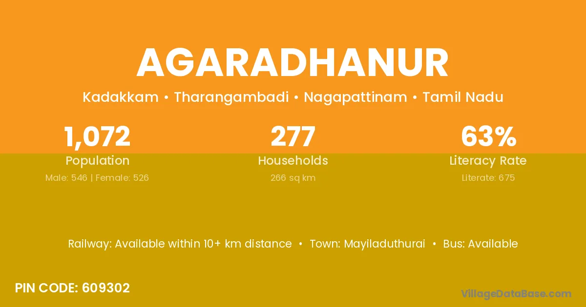 Mayiladuthurai is the nearest town to Agaradhanur village for major economic activities