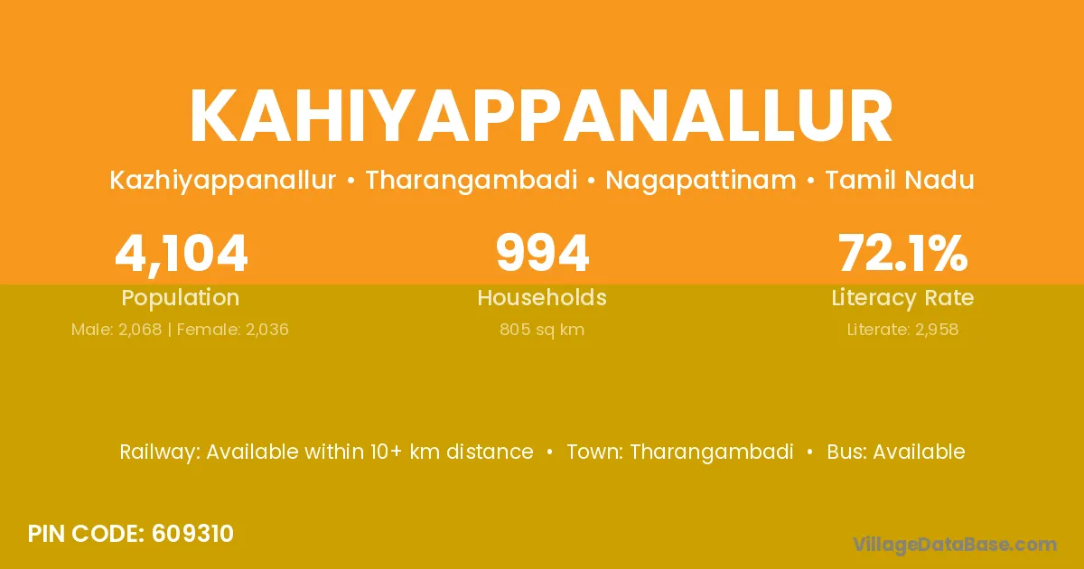 Tharangambadi is the nearest town to Kahiyappanallur village for major economic activities