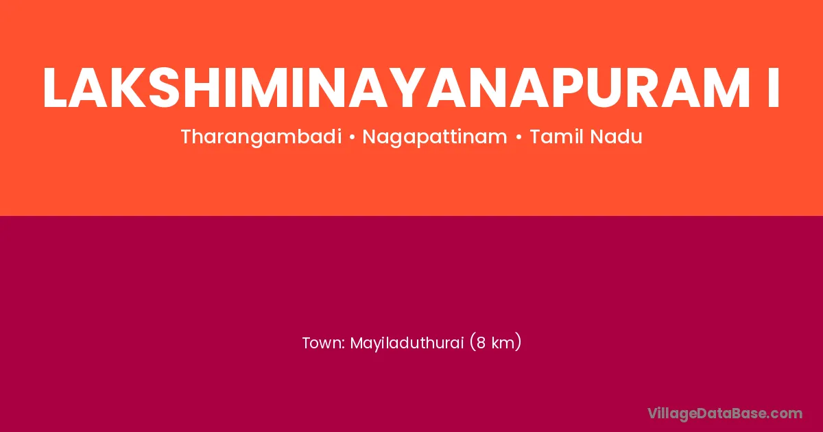 Mayiladuthurai (8 km) is the nearest town to Lakshiminayanapuram I village for major economic activities and is located approximately 8 km away.