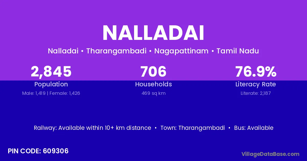 Tharangambadi is the nearest town to Nalladai village for major economic activities
