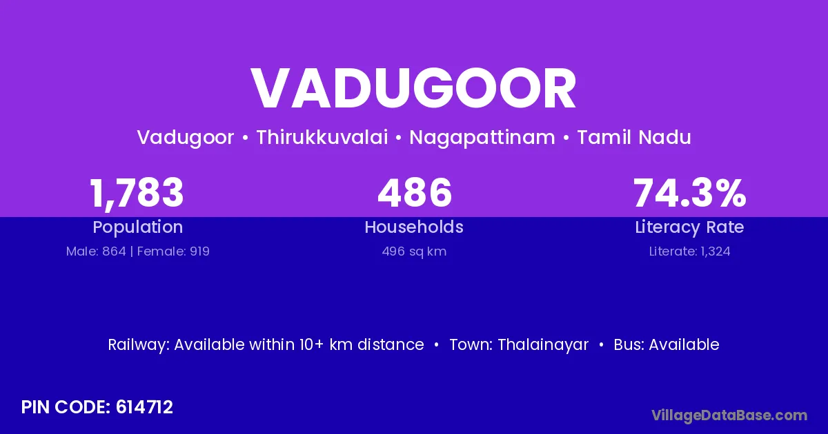 According to Census 2011 information, the village code of Vadugoor village is 614712.