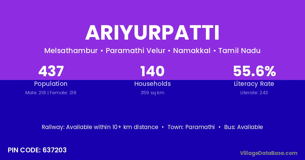 Ariyurpatti village has a total population of 437 people, of which 218 are males and 219 are females.