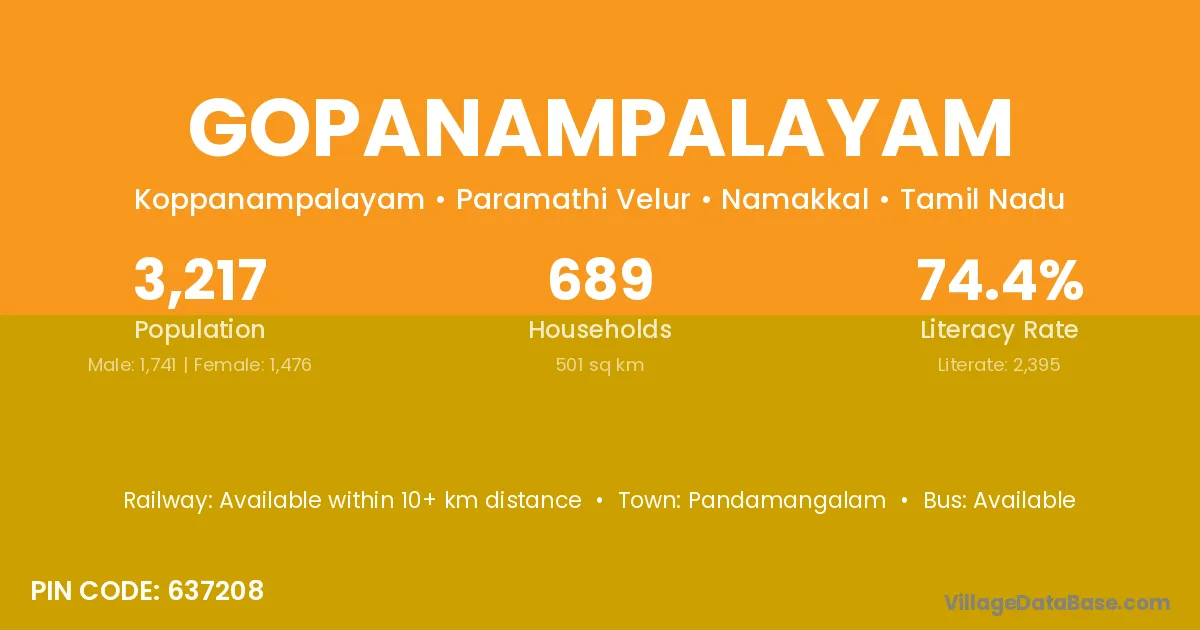 According to Census 2011 information, the village code of Gopanampalayam village is 637208.