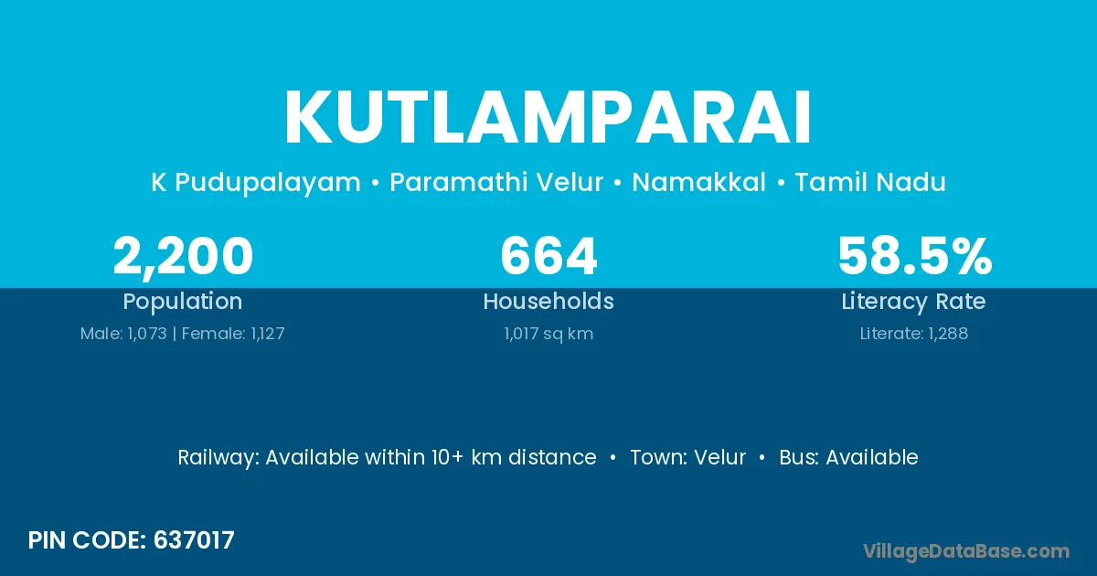 According to Census 2011 information, the village code of Kutlamparai village is 637017.