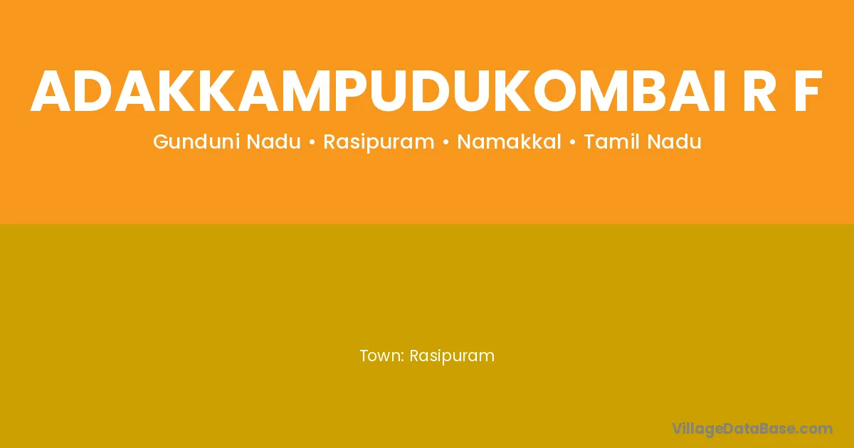 Rasipuram is the nearest town to Adakkampudukombai R F village for major economic activities