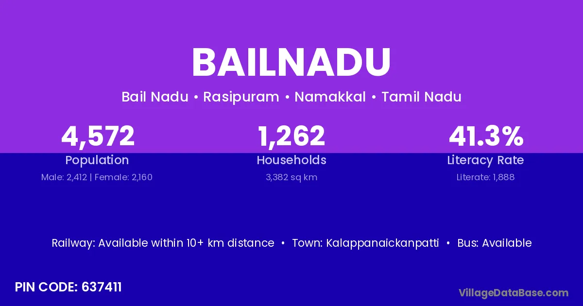 According to Census 2011 information, the village code of Bailnadu village is 637411.