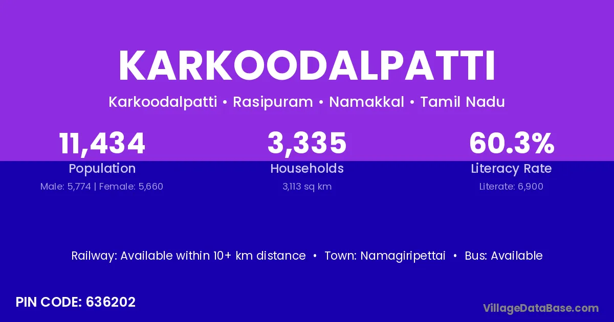 According to Census 2011 information, the village code of Karkoodalpatti village is 636202.