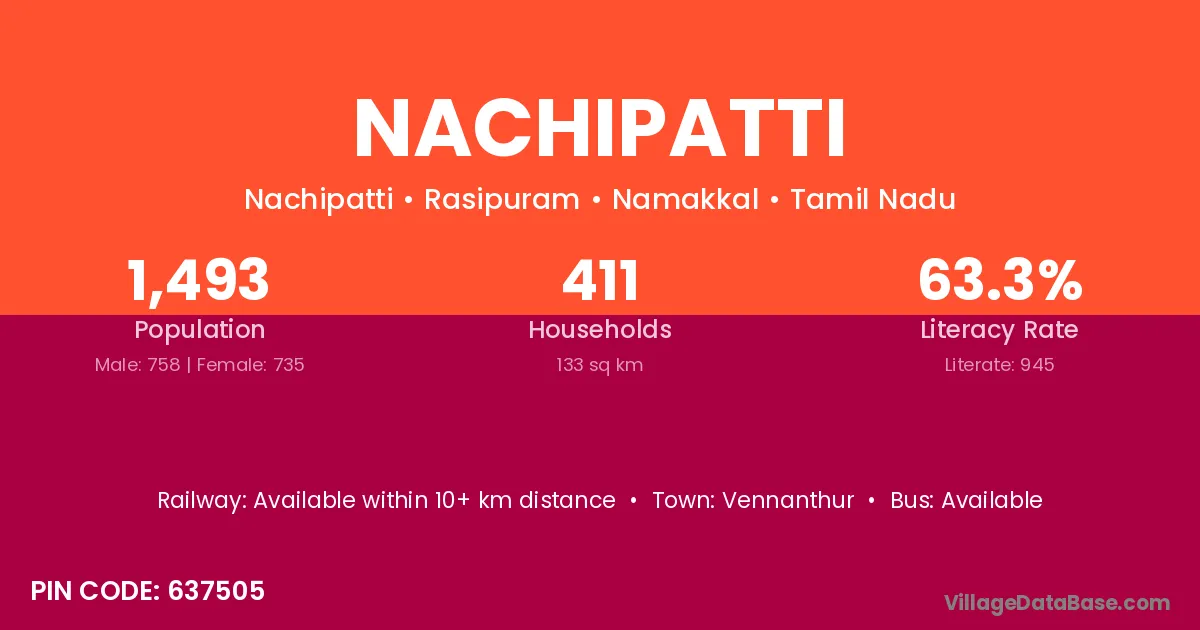 Nachipatti village has a total population of 1,493 people, of which 758 are males and 735 are females.