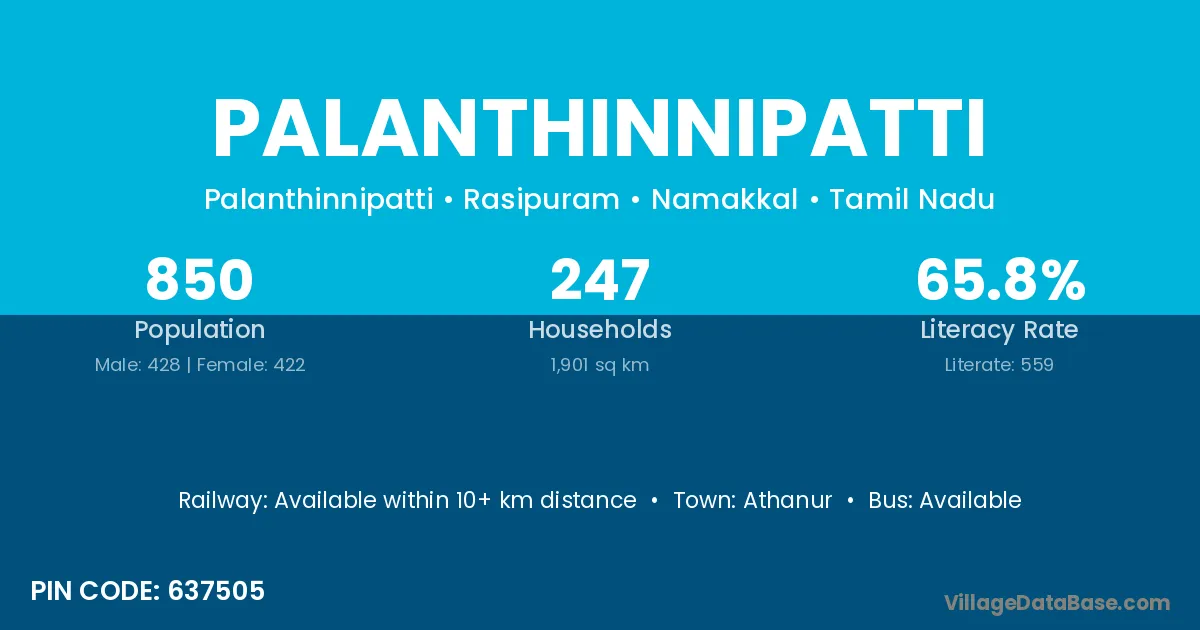 Palanthinnipatti village has a total population of 850 people, of which 428 are males and 422 are females.