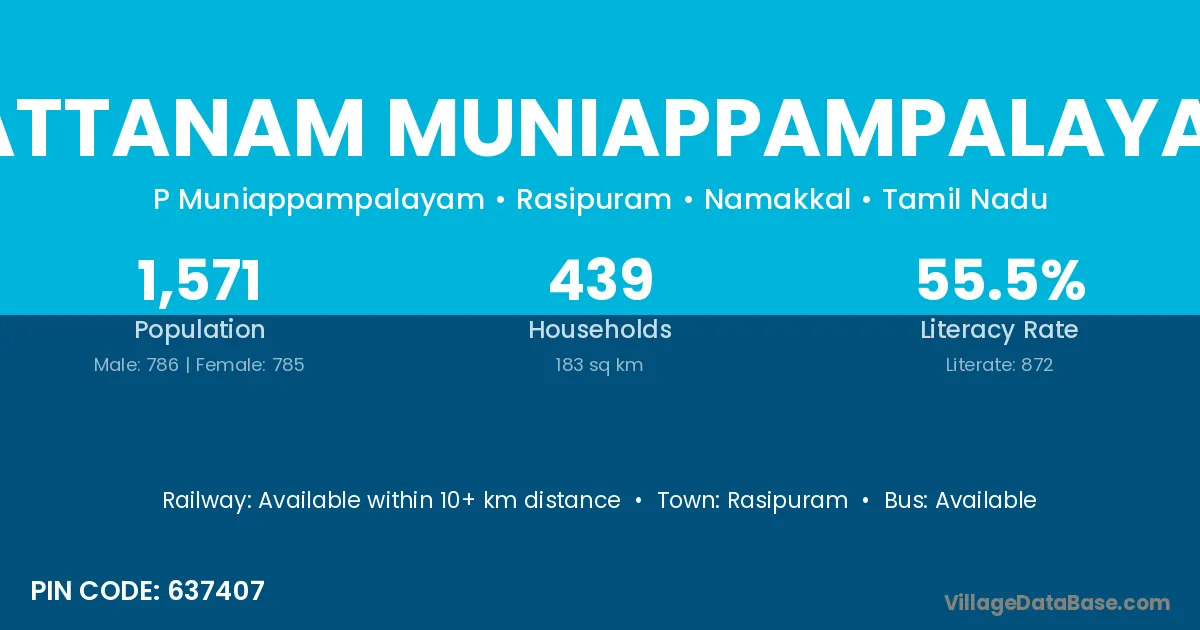Rasipuram is the nearest town to Pattanam Muniappampalayam village for major economic activities