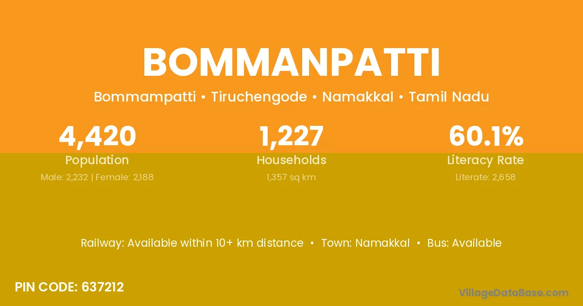 According to Census 2011 information, the village code of Bommanpatti village is 637212.