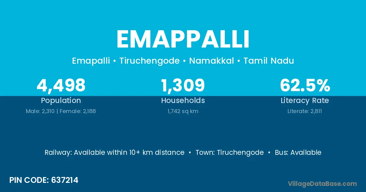 Tiruchengode is the nearest town to Emappalli village for major economic activities