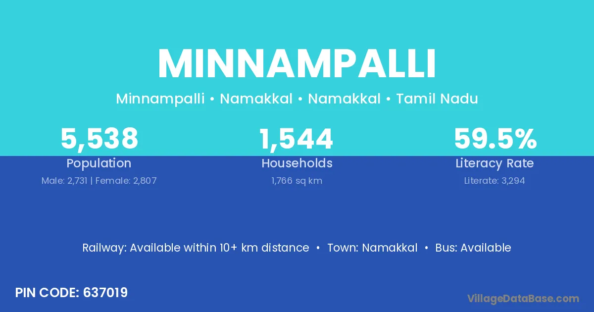 According to Census 2011 information, the village code of Minnampalli village is 637410.