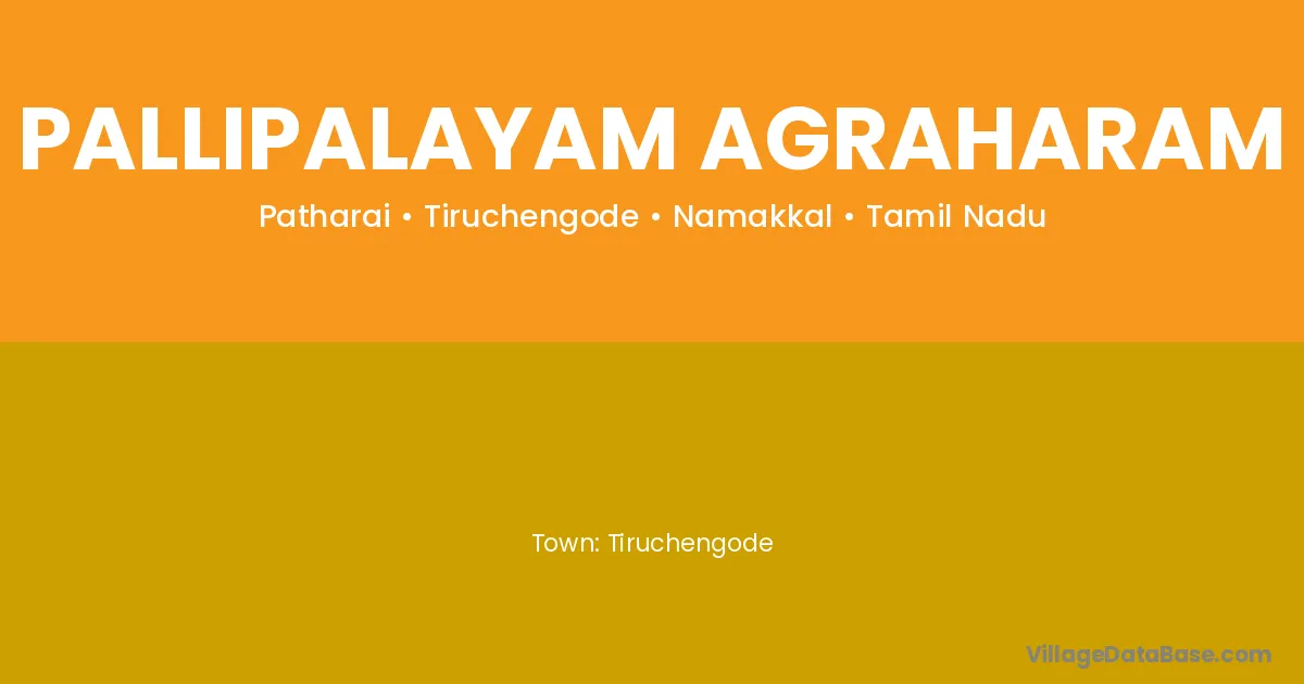 Tiruchengode is the nearest town to Pallipalayam Agraharam village for major economic activities