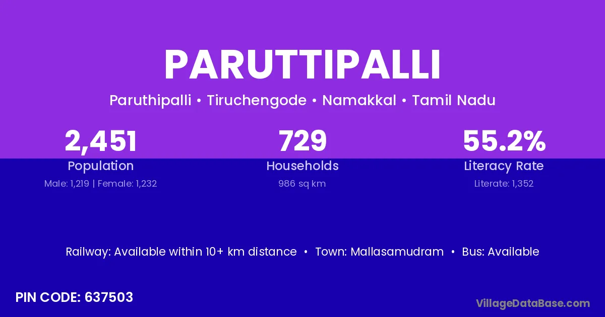 According to Census 2011 information, the village code of Paruttipalli village is 637503.