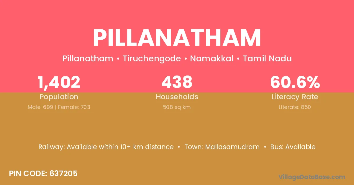 According to Census 2011 information, the village code of Pillanatham village is 637205.