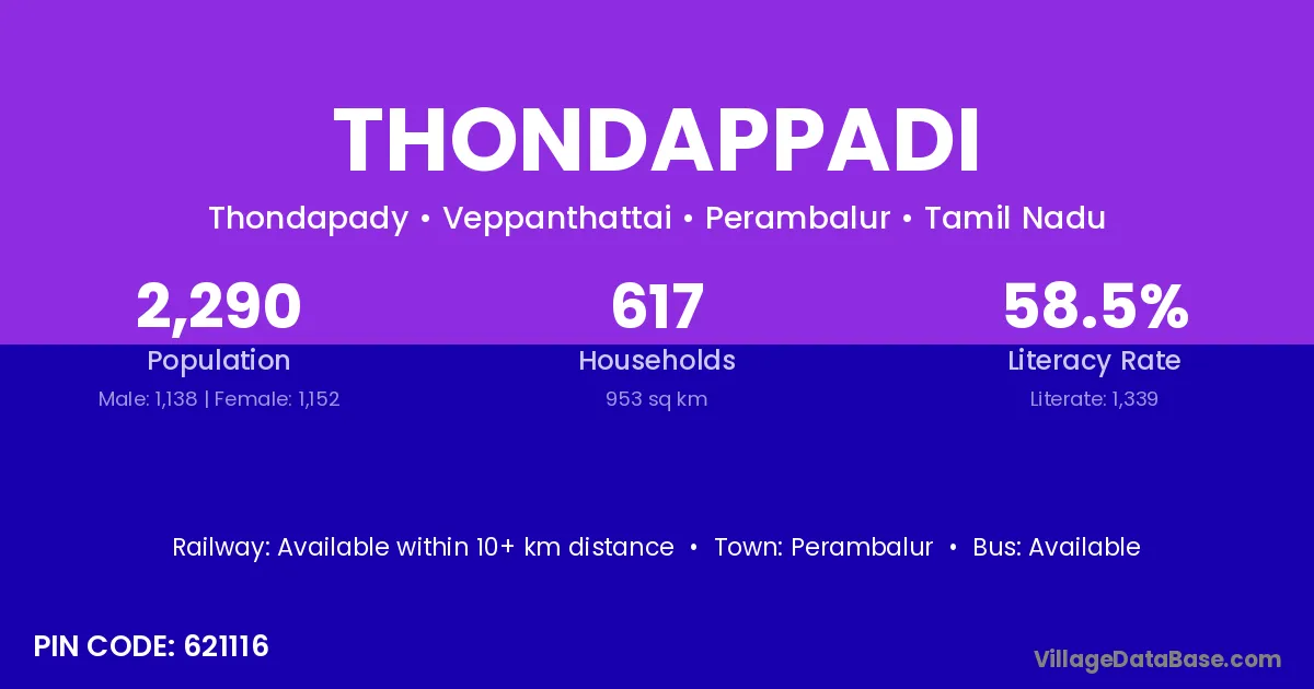 Ariyalur is the nearest town to Thondappadi village for major economic activities