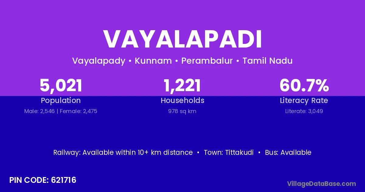 According to Census 2011 information, the village code of Vayalapadi village is 621716.