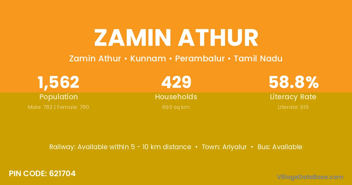 According to Census 2011 information, the village code of Zamin Athur village is 621704.