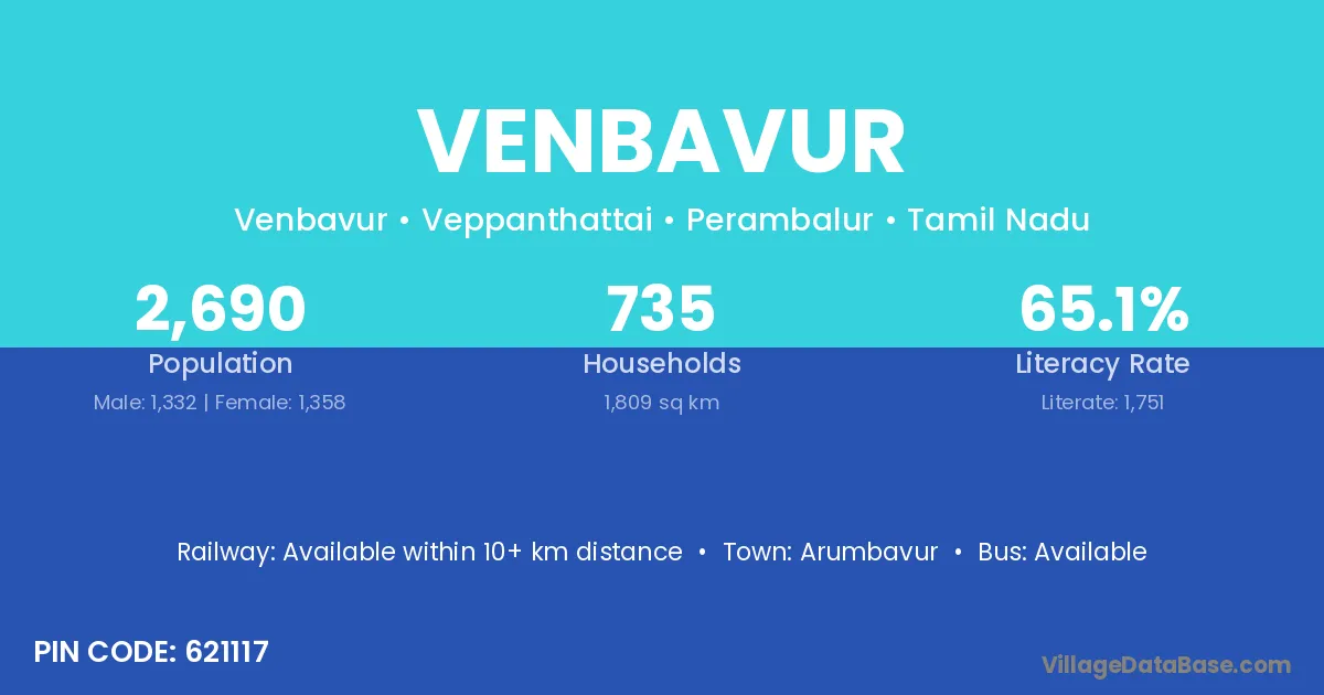 Arumbavur is the nearest town to Venbavur village for major economic activities