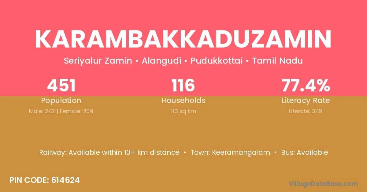 According to Census 2011 information, the village code of Karambakkaduzamin village is 614624.