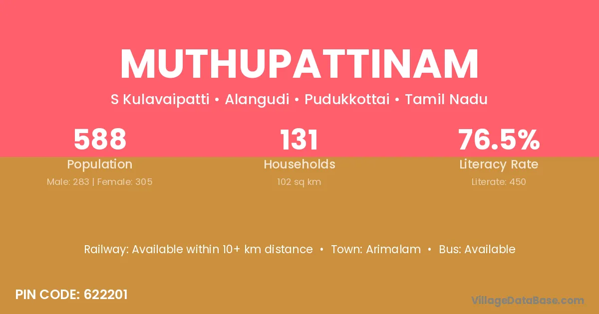 Arimalam is the nearest town to Muthupattinam village for major economic activities