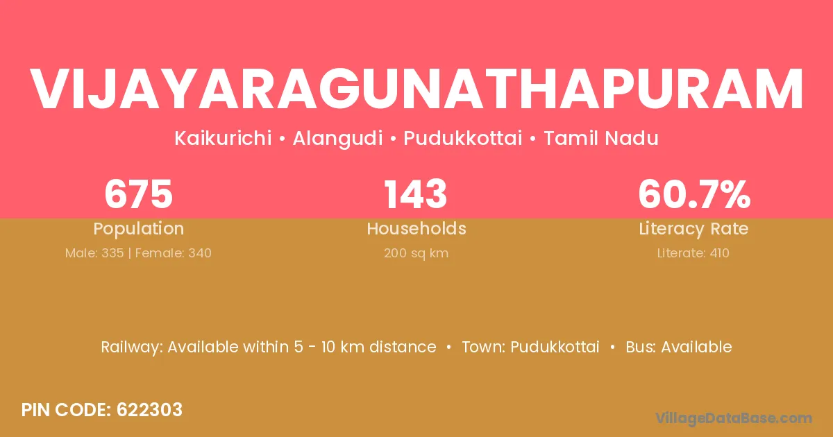 Vijayaragunathapuram village has a total population of 675 people, of which 335 are males and 340 are females.