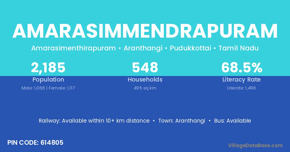 Aranthangi is the nearest town to Amarasimmendrapuram village for major economic activities