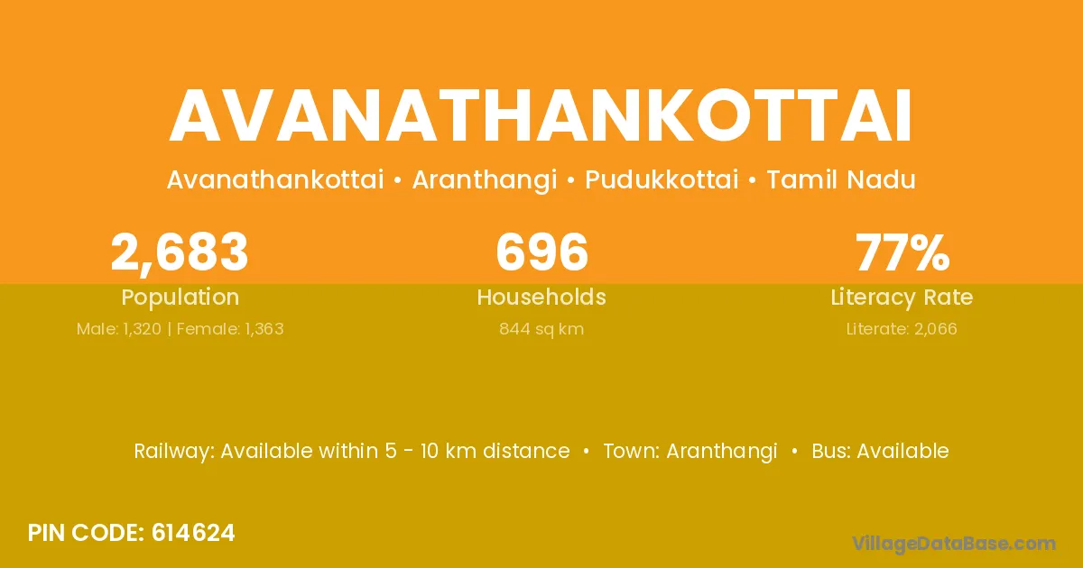 Avanathankottai village has a total population of 2,683 people, of which 1,320 are males and 1,363 are females.