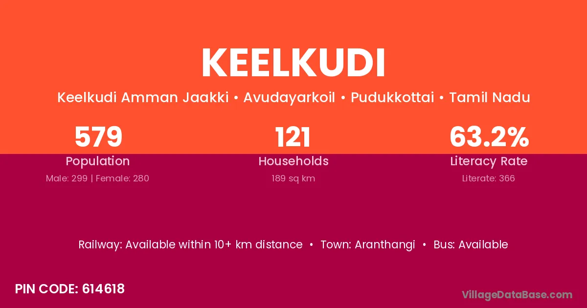 According to Census 2011 information, the village code of Keelkudi village is 614616.