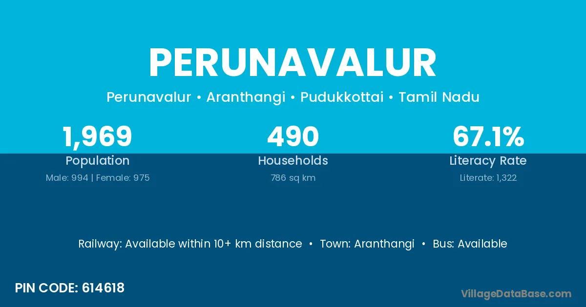 Aranthangi is the nearest town to Perunavalur village for major economic activities