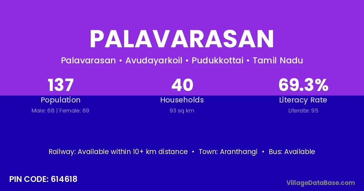 According to Census 2011 information, the village code of Palavarasan village is 614618.