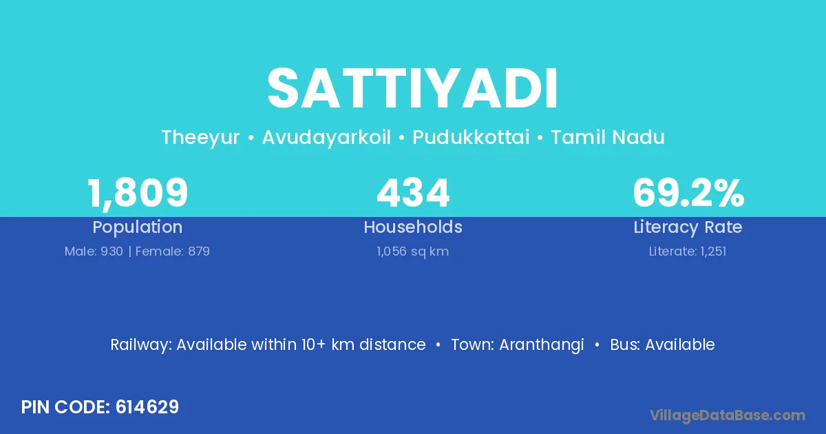 Aranthangi is the nearest town to Sattiyadi village for major economic activities