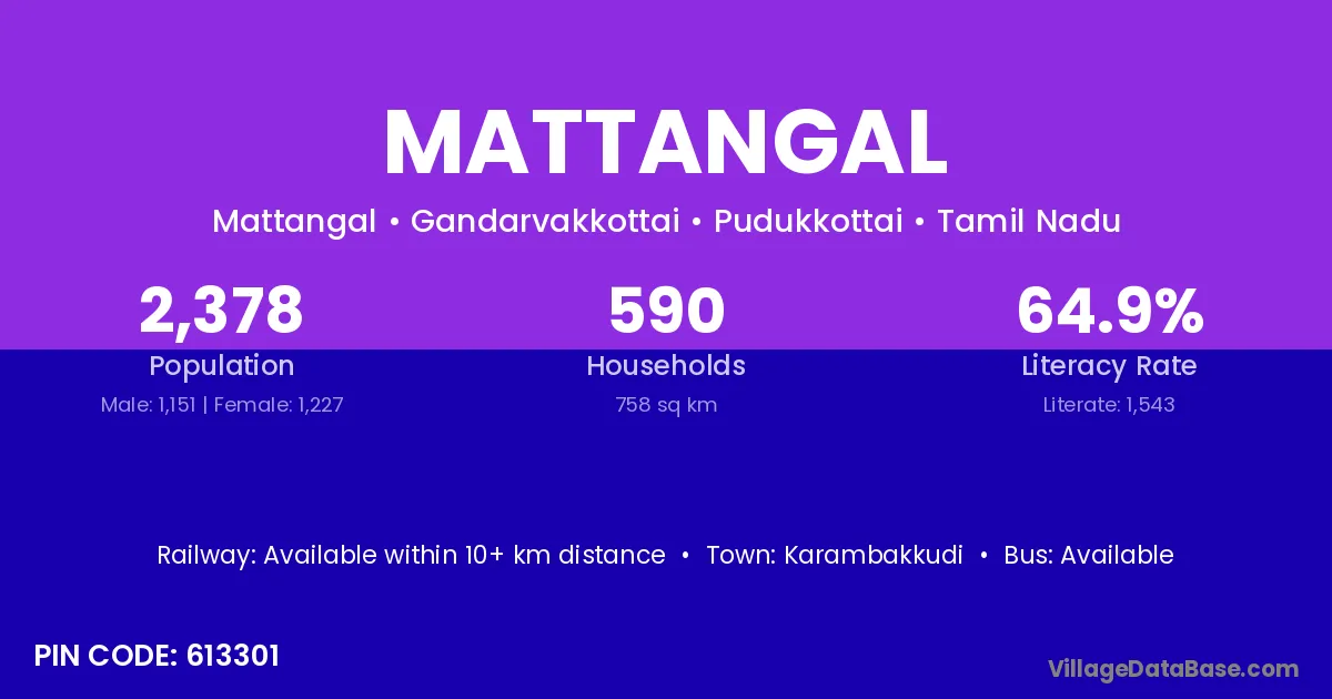 Karambakkudi is the nearest town to Mattangal village for major economic activities