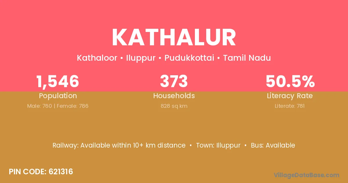 Kathalur village has a total population of 1,546 people, of which 760 are males and 786 are females.