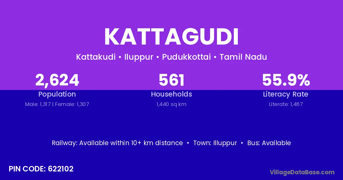 According to Census 2011 information, the village code of Kattagudi village is 622102.