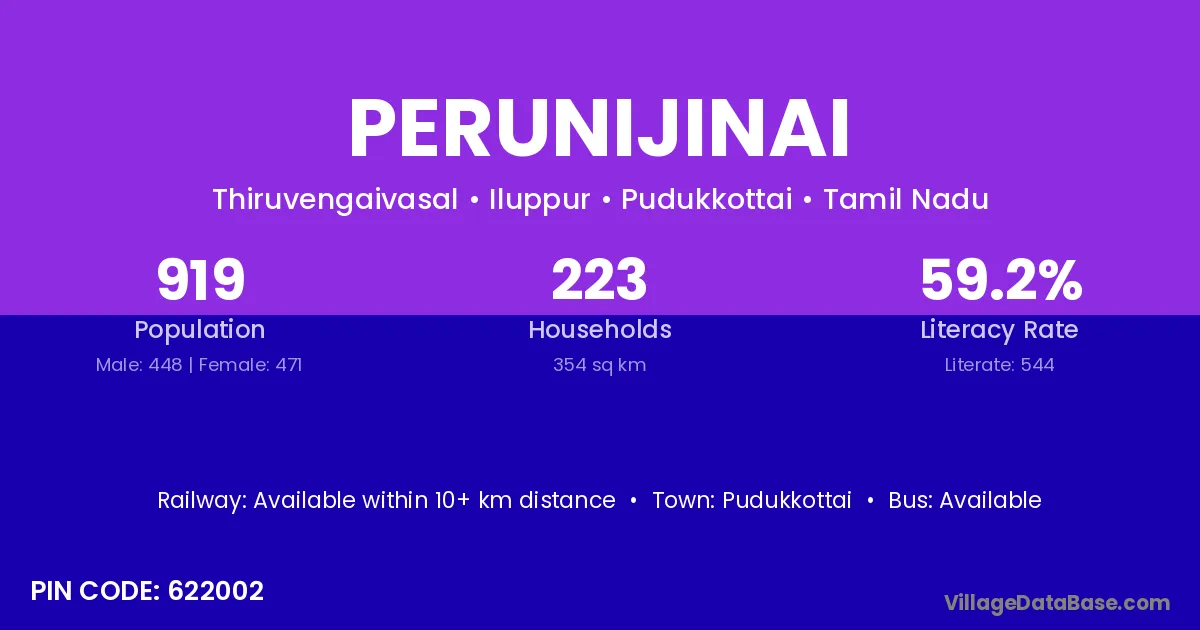 Pudukkottai is the nearest town to Perunijinai village for major economic activities