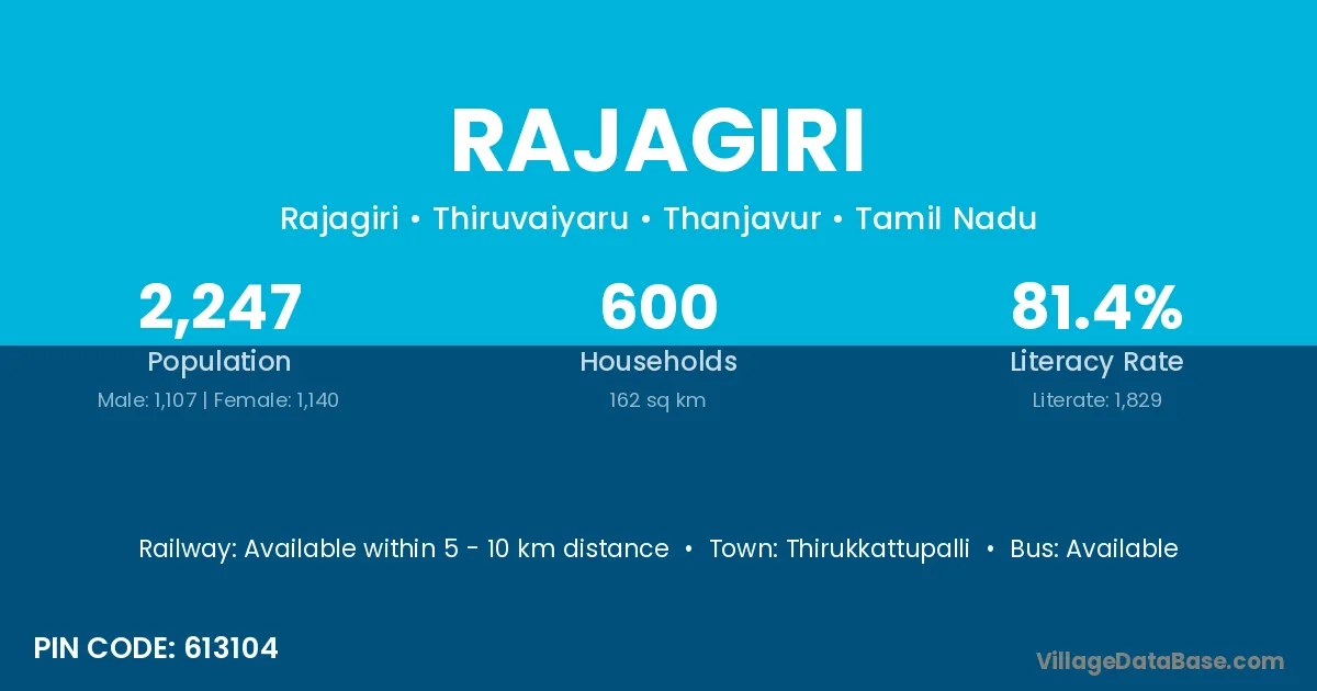 According to Census 2011 information, the village code of Rajagiri village is 621316.
