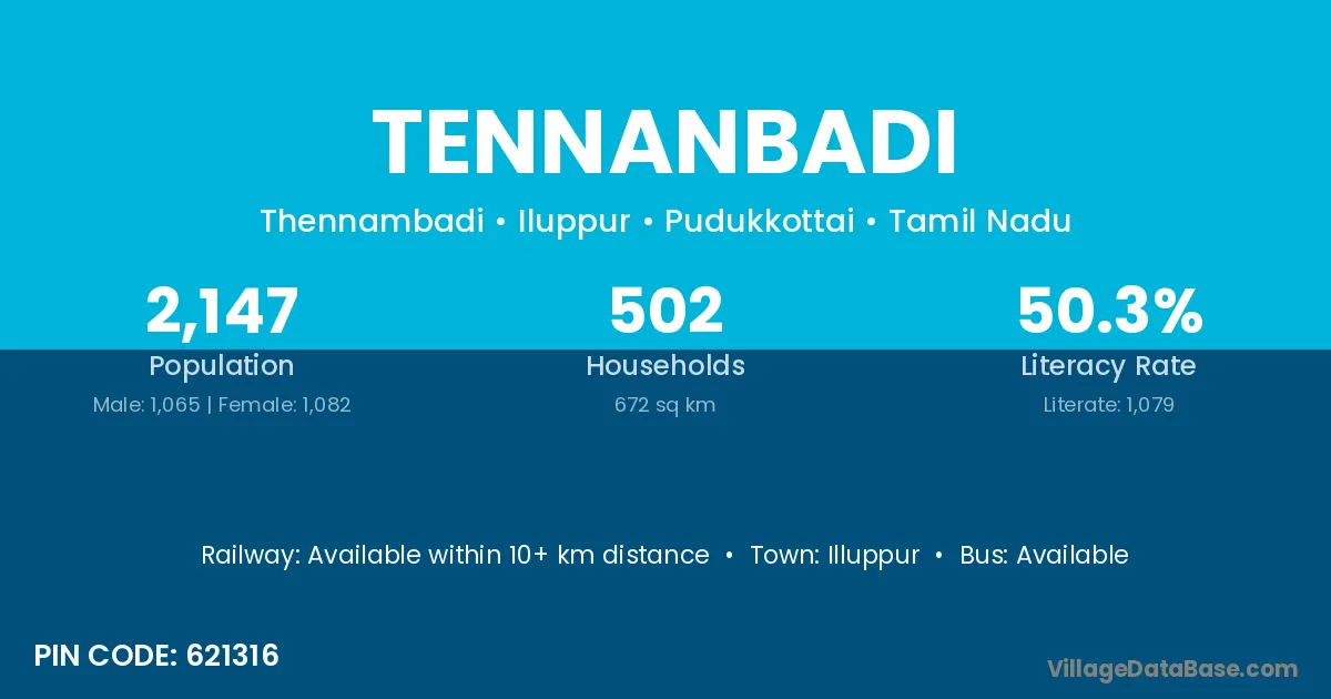 According to Census 2011 information, the village code of Tennanbadi village is 621316.