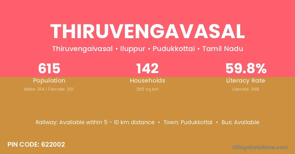 Pudukkottai is the nearest town to Thiruvengavasal village for major economic activities