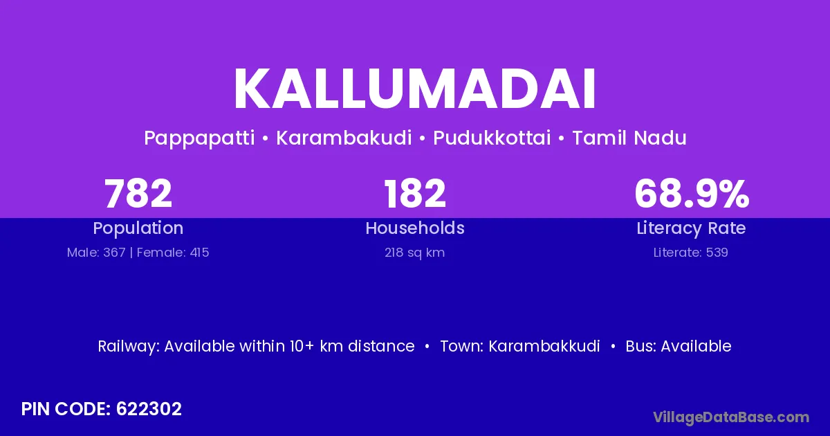 Karambakkudi is the nearest town to Kallumadai village for major economic activities