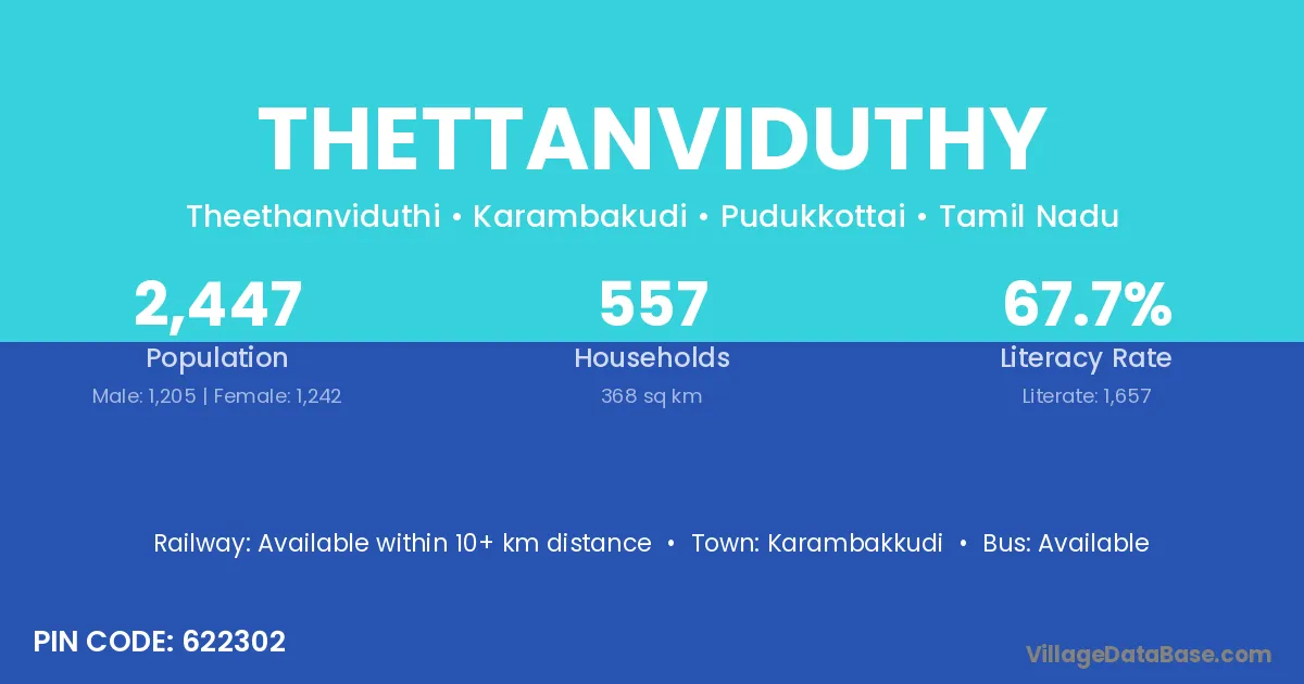 Karambakkudi is the nearest town to Thettanviduthy village for major economic activities
