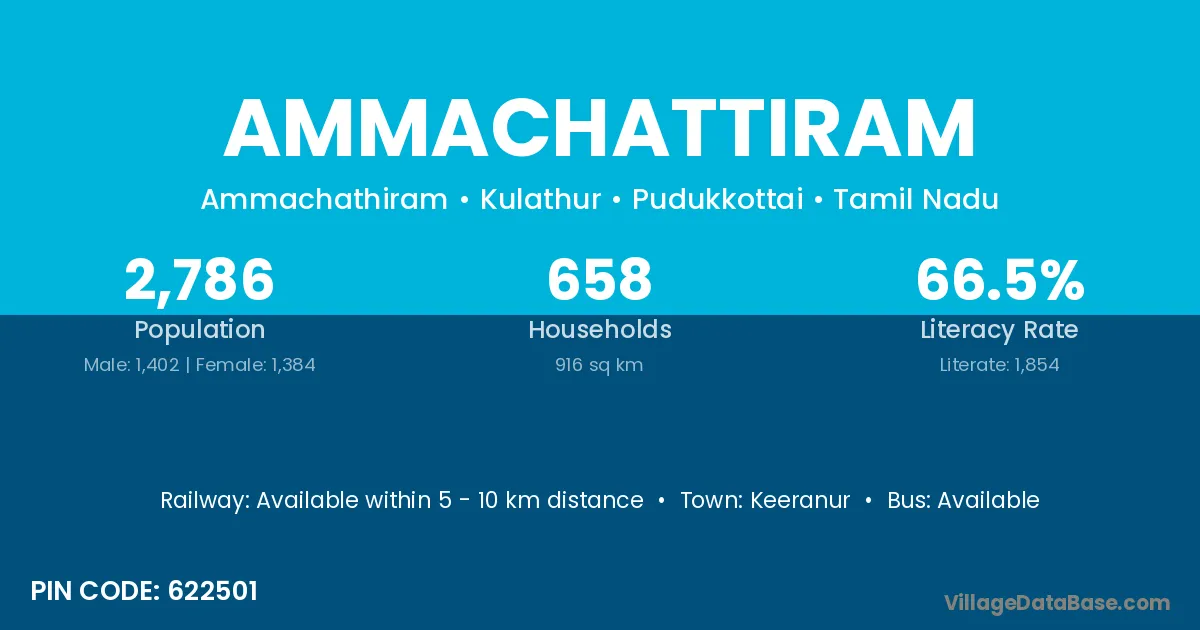 According to Census 2011 information, the village code of Ammachattiram village is 622501.