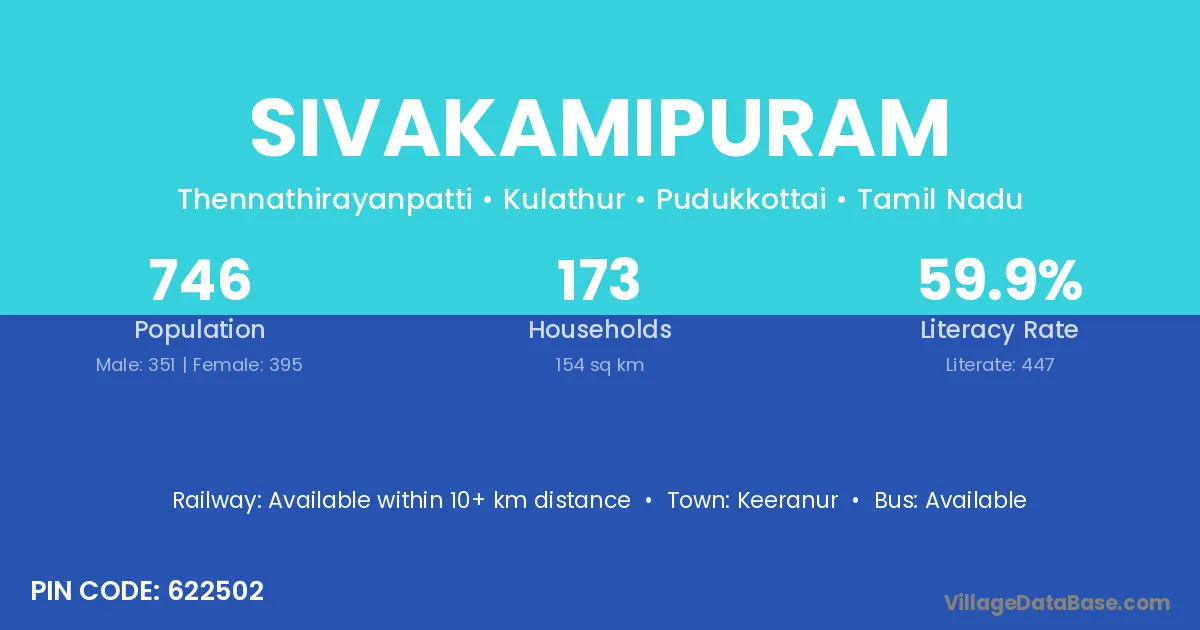Keeranur is the nearest town to Sivakamipuram village for major economic activities