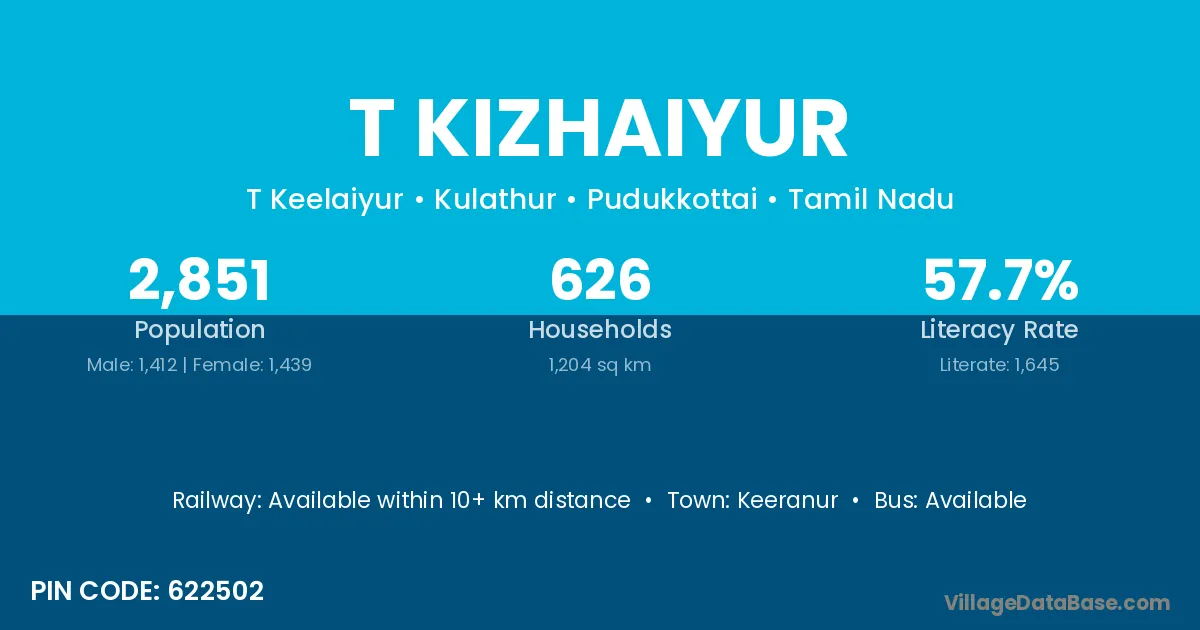 Keeranur is the nearest town to T Kizhaiyur village for major economic activities
